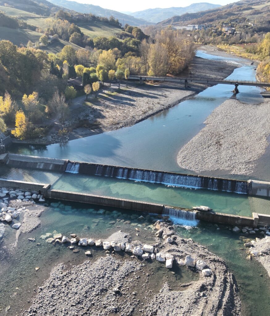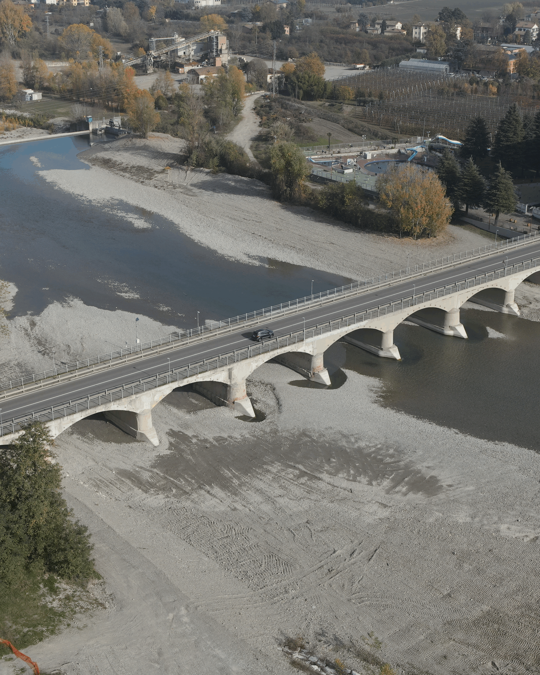 Documentazione fotografica e video realizzata con drone per osservare il corso del fiume Panaro, il paesaggio fluviale e le trasformazioni del territorio.